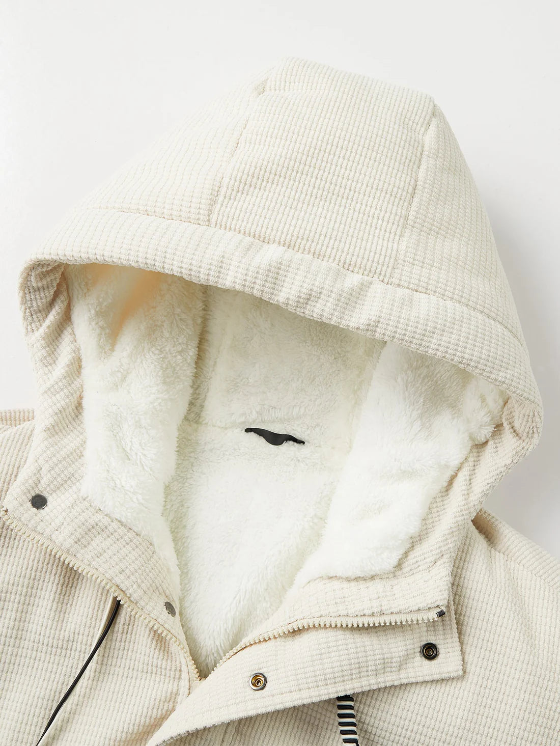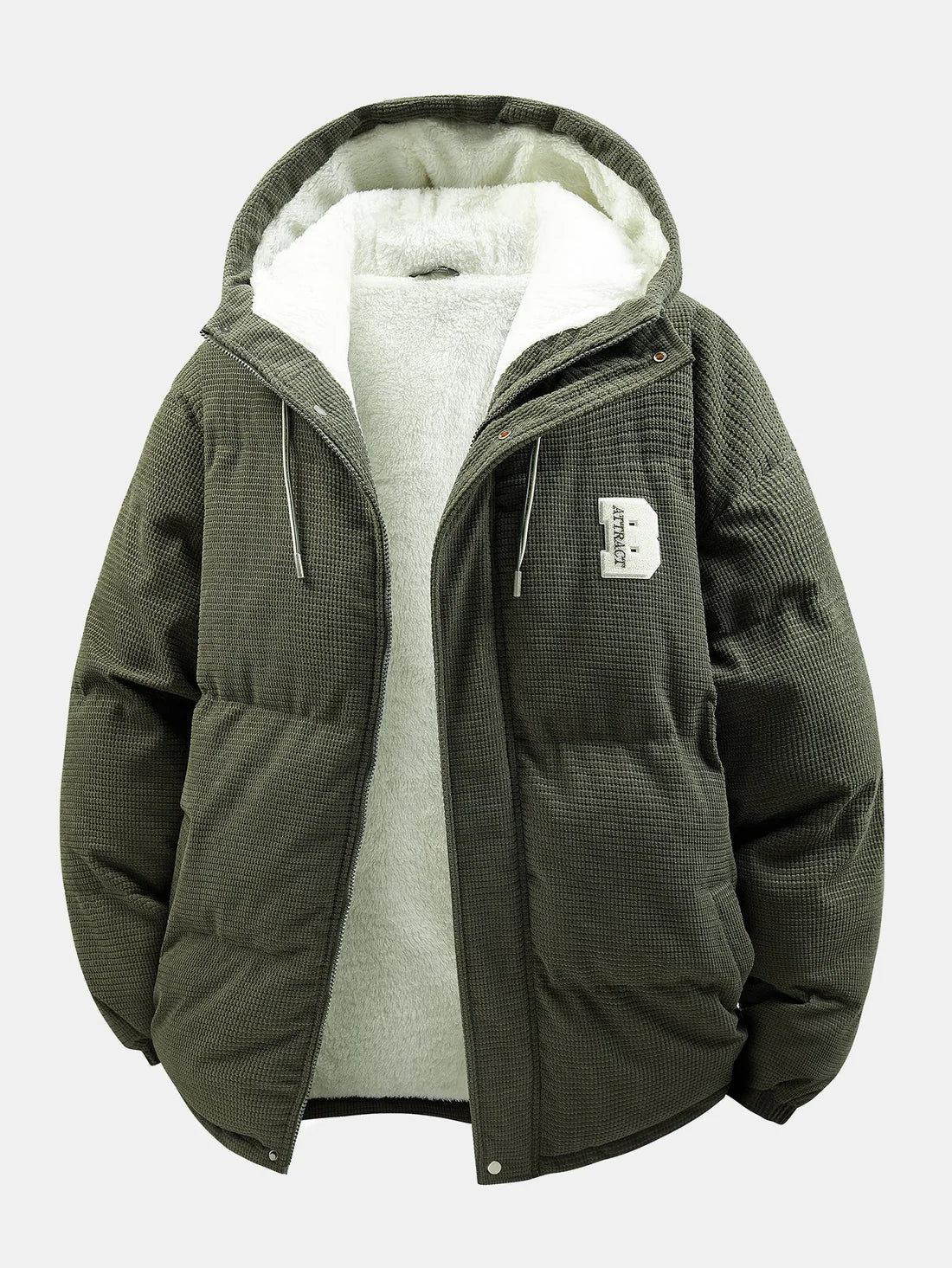 A modern blend of comfort and structure, this sherpa-lined hooded jacket delivers warmth with a refined edge. Made from premium textured cotton, it features a plush inner lining and durable outer shell for lasting quality. The relaxed fit and detailed stitching make it effortlessly versatile.